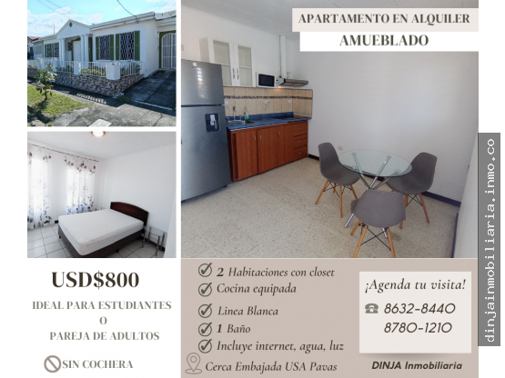 Se Alquila Apartamento Amueblado - 2 Habitaciones - Cerca Embajada USA