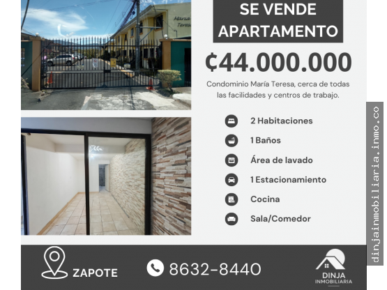 Se vende apartamento en Zapote, San José, Condominio María Teresa